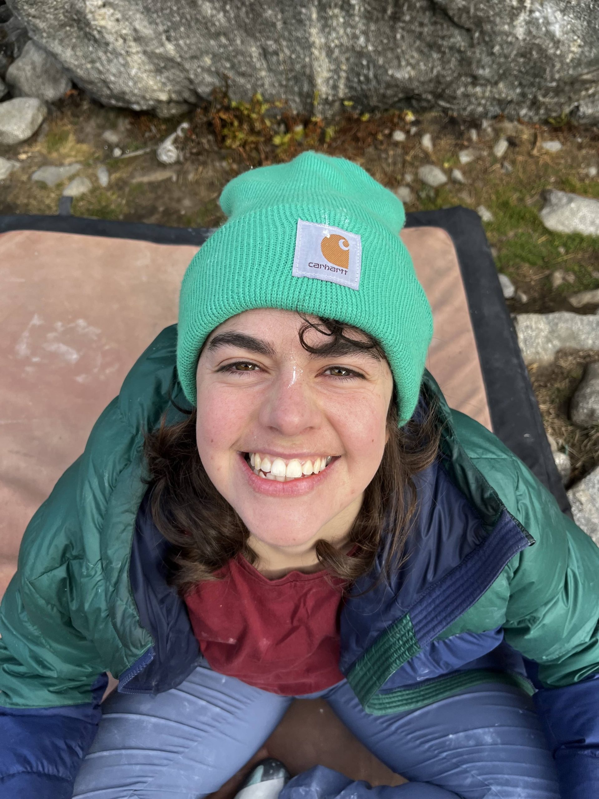 Fran’s flexibility is one of her strengths as a climber, helping her boulder up to 6C, and hopes to send 7C one day.